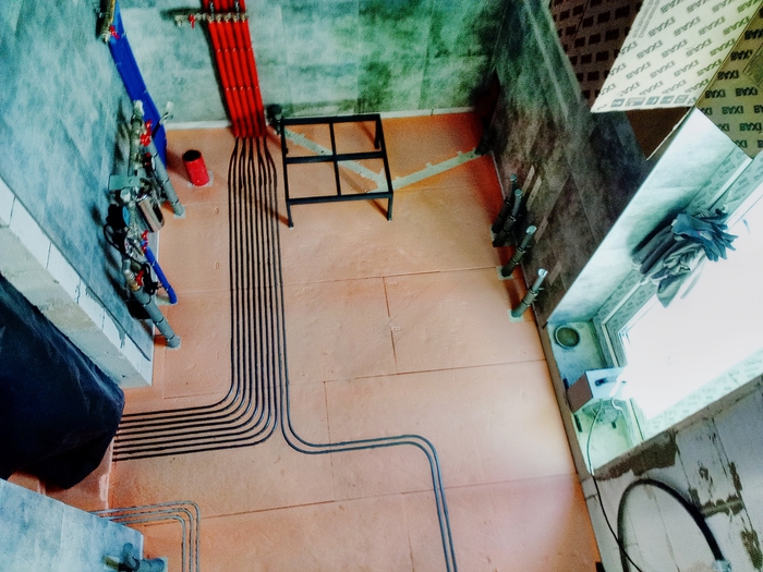 7. Коллектор отопления не высоко висит ? При усадке дома не погнёт трубки (понятно, что1 этаж и мало венцов, но всё же) Каркас под лист на ;скользяшках: собран ?