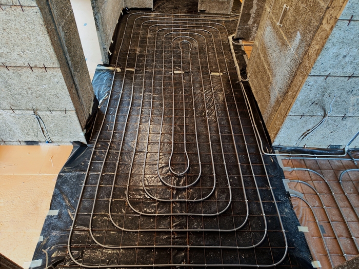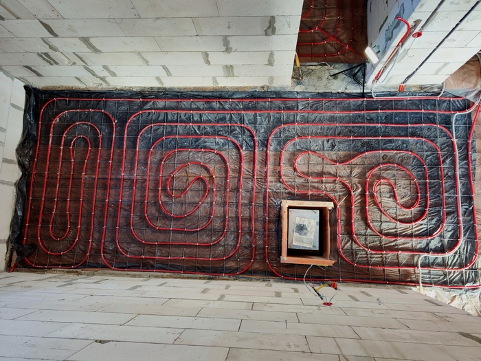 Выполнен монтаж теплых полов и радиаторов в доме площадью 140кв.м. Котельная будет во второй части.