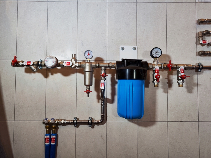 В итоге, это первый дом, пожелавший иметь отопление в виде теплых полов, радиаторов и котельной от нас. Канализацию и водоснабжение выполнили строители, чтобы не ждать нас и не простаивать.