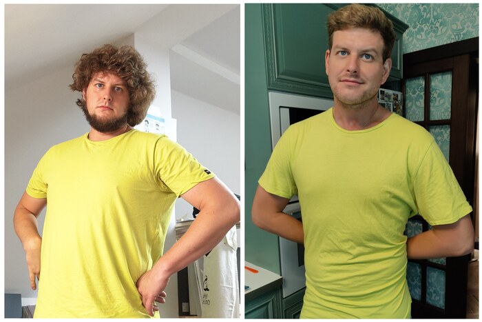 От того тощего мальчика уже мало что осталось. Я превратился в жирного мужика, который храпит уже в любом положении. Мне уже стало кайфово валяться на диване с пивком. Лень как привычка начала прогрессировать. Я много раз начинал как и многие браться за себя "с понедельника". Особенно когда смотрел на тех кто активно начал из моего окружения. Меня хватало на 1-2 недели, но один раз я героически продержался месяц. Делал какие-то упражнения из Ютуба. Месяц. Потом опять забивал на это болт. А, вот ещё что интересно, я постоянно фоткался типа сделаю серию фоток раз в неделю, буду следить за прогрессом, но потом бросал, поэтому у меня где-то есть серия фотографий разных лет и можно наоборот проследить как я свинею ещё больше. 100кг в 22 года, а в 31 я стал весить 115. Да у меня большой рост 195см, и многие говорили что для моего роста впринципе не видно что я жирный. Но жена частенько намекала "я тебя встретила не таким...". И вот весной этого года, я как и многие начал читать новости, телегу и прочие источники информации с утра до вечера. Спустя месяц пришло осознание что кукуха немного плывет. Решил заняться собой, либо сейчас, либо уже, наверное, никогда. Жена уже много лет занималась йогой и пилатесом практически каждый день. У неё фигура близка к идеалу. Я попросил её очень поддержать меня в этом. И в питании и в занятиях. Она подумала что очередной раз на месяц, не больше. Но в этот раз меня цепануло очень сильно. Правильное питание и занятия 5 дней в неделю творят чудеса. Первые 3 месяца -20 кило, а последние 6 ещё 5 кило. И да, в этот раз фоткаться каждую неделю я не захотел, подумал что это дурной знак. Но фотки до/после все равно есть.