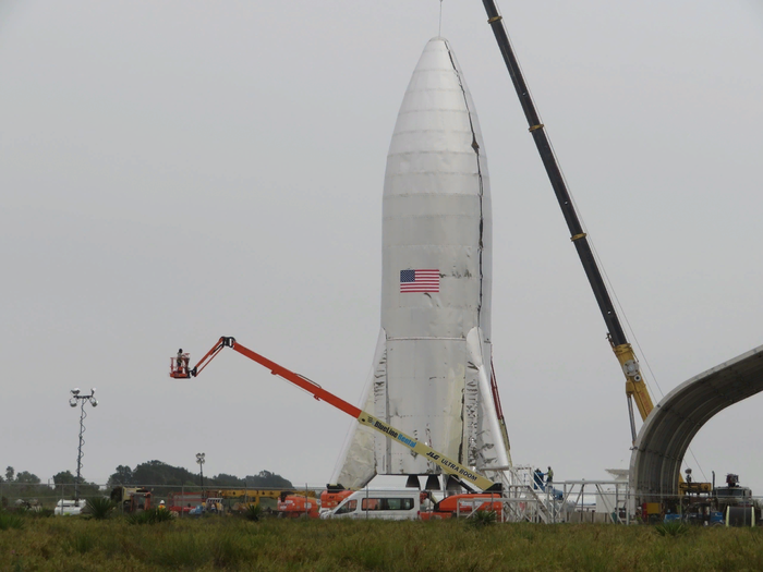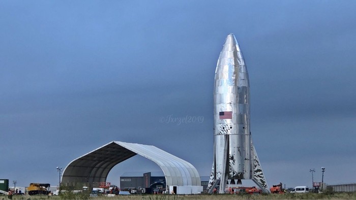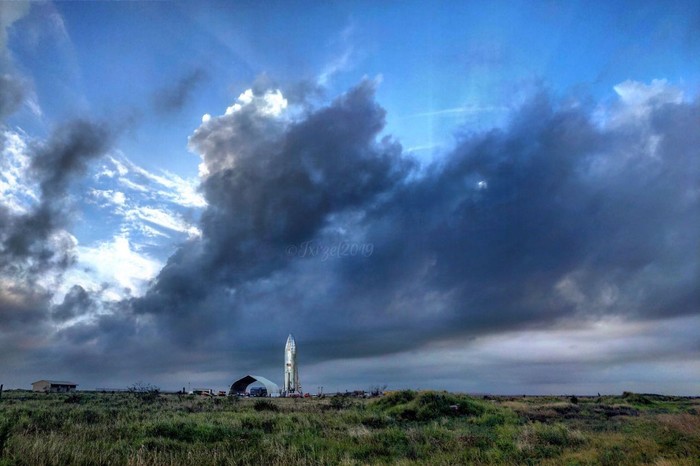 - Только что завершили сборку тестовой модели Starship для лётных испытаний на пусковой площадке SpaceX в Техасе. Это реальное фото, не рендер;