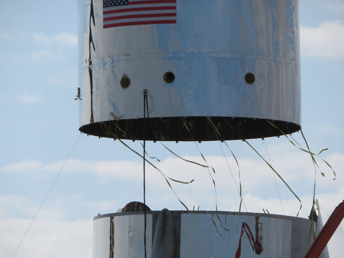Неизвестно был ли это последний раз когда хоппер разъединили, или же это будет повторяться. Некоторые считают что ещё будет разъединение для установки топливных баков, но я в это слабо верю, поскольку считаю что баки уже находятся в нижней части хоппера. Да и если посмотреть на фото с высоты, крепить их там особо не к чему:
