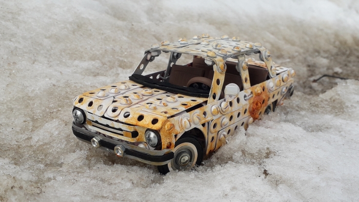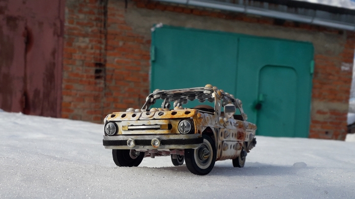 Далее нам выдают толстоватую антенну, не рассверленные проушины на корпусе и запаянный "бочонок" выхлопа, выбор положения лючков и капота. Капот я зачем то оставил открывающимся, но смотреть там особо нечего - по центру стоит столб напоминающий двигатель, но выглядит не убедительно, видимо просто что бы был.
