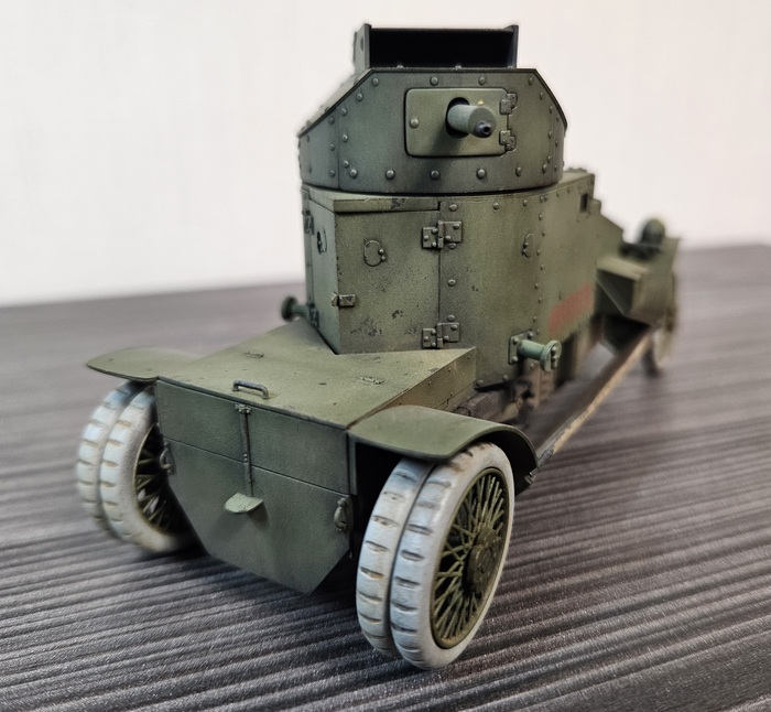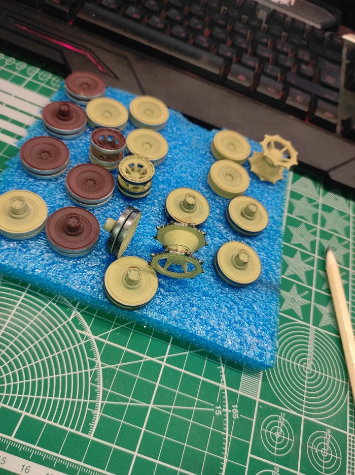 Гусеница в наборе дана из то ли винила то ли резины. С такими я не сталкивался и больше не хочу. Замучился еë натягивать так что бы при этом не отвалилась краска, а она отходит очень легко. Также в наборе обнаружились неиспозуемые ро инструкции траки, их я тоже пустил в дело и сделал из них кусок гусенично ленты на запаску.