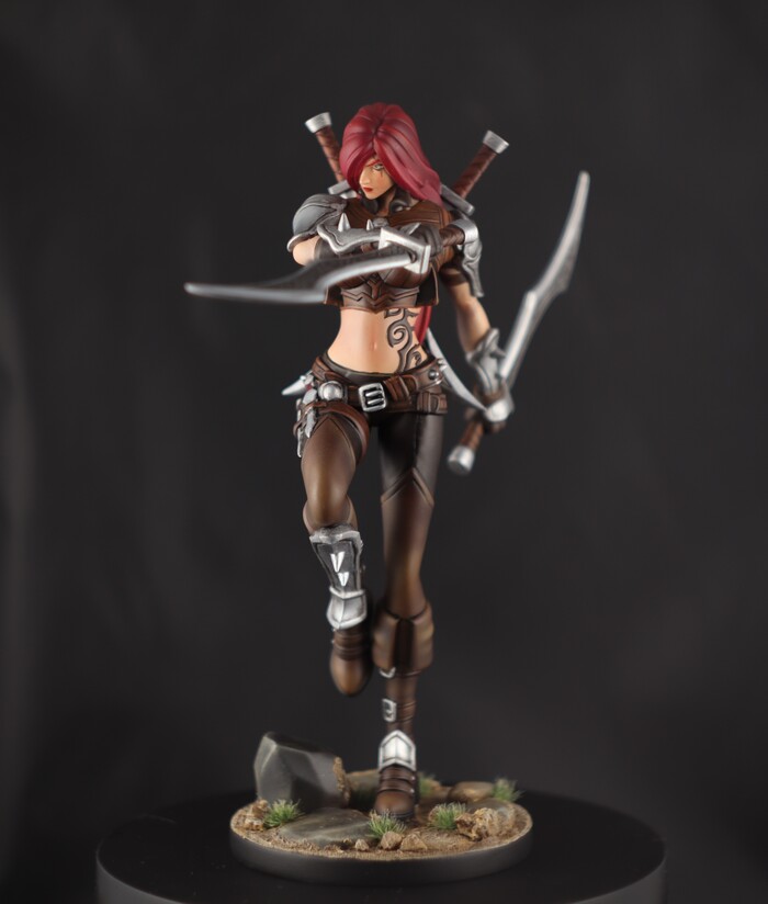 Хочу представить свою очередную работу. Это Катарина из игры "League of Legends". Высота фигурки 180 мм, печатал на Anycubic Photon Mono5s, высота слоя 50 мк, смола Anycubic Standard Resin V2 HD GRAY. Красил акрилом АК и Warpaints. Работа была выполнена в простом варианте, без особых изысков и техник. Последняя фотография сделана на тёплый ламповый советский объектив "Гелиос 44-2" сугубо посмотреть, как он себя покажет при предметной съёмке.
