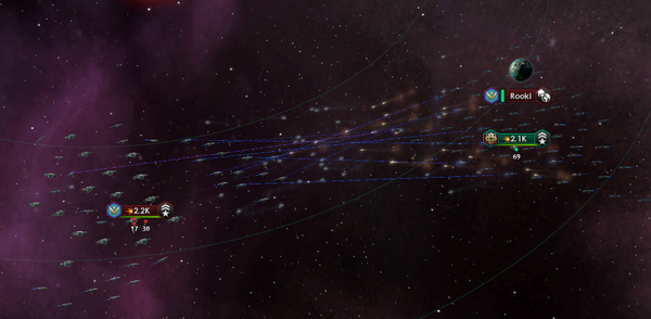 - поведение по умолчанию изменено от чего-то напоминающего роевое к такому, когда корабли периодически сближаются с противником и атакуют залпами, так что космические сражения теперь будут меньше похожи на потревоженный пчелиный роль, кроме случая, когда все участники оснастят свой флот роевыми компьютерами.