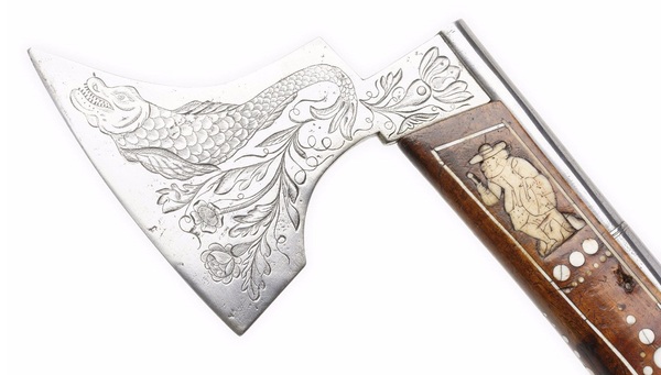 Рукоять имела особую форму, дабы исключить выскальзывание из руки при сильном рубящем ударе. Она охватывала всю нижнюю часть ладони и оканчивалась своеобразным расширением, называемым «уши».