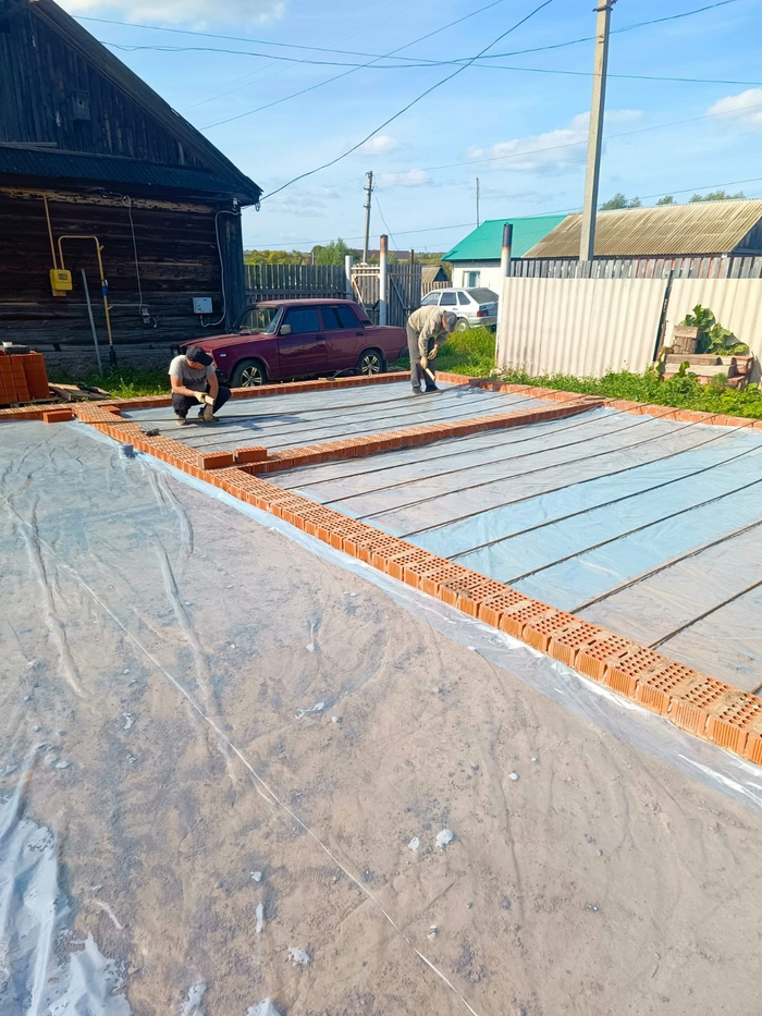 10 сентября сняли полиэтилен в который плита была укутана как сверху так и снизу.