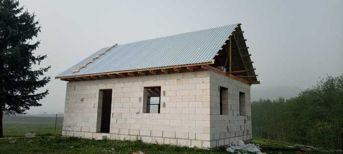 Увидев новые окна, жена сразу заказала кусок дешёвого бытового линолеума, т.к. с бетонной пыльной плитой новые окна не смотрелись, хотя я уже заявил о своём намерении делать пол.