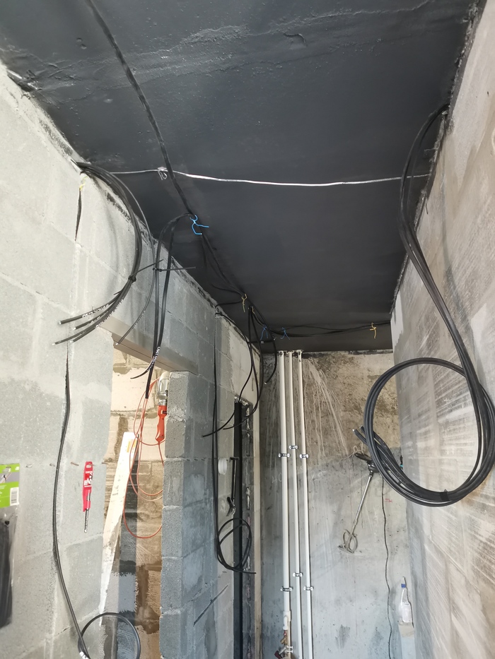 Перед прокладкой проводов решил обеспылить потолок грунтовкой и краской. Захотелось легкого намека на стиль лофт 😁