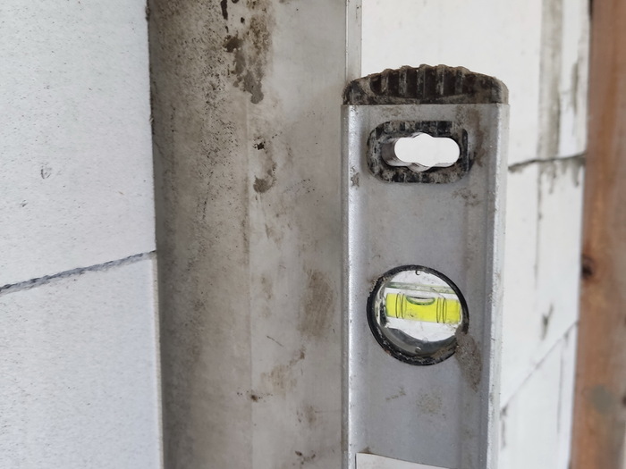 Пятница. Вот и пошел третий день кладки, сегодня нам надо выложить еще как минимум три-четыре ряда. А значит нам потребуются строительные леса или вышка тура. Проще всего леса собрать из блоков, положив блоки друг на друга и доски, по которой и будем ходим, с увеличением высоты постепенно. Не забываем контролировать уровень каждого блока по всех плоскостях. А это бывает нелегко, особенно если блоки из остатков как у меня. Изначально блоки тоже не верх ровности, перепады по 2-3мм на сторону - обычное дело. На фото это видно, один из блоков - трапеция. Кроме того блоки могут быть плохо прорезаны с завода или просто «слипнуться» Положили три-четыре ряда, устали, потому что теперь мы не просто таскаем 25кг блоки руками, но еще и лазим с ними по лесам. А высота стены у нас уже достигает 2,4 метра. Клей кончился или схватился, ведь его срок жизни часа два три. А мы ...шагаем с работы усталым...