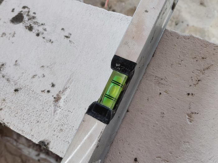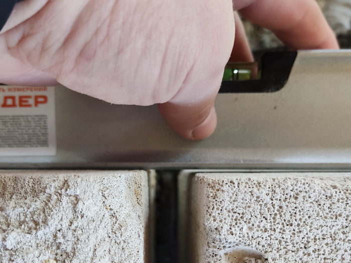 Четверг. А у нас начинается кладка блоков. Это не очень сложно, ведь один блок весит всего то 25 кг, и размерами он 6*3*2 дм, вооот опять нам пригодились дециметры. Так как я делаю не несущую перегородку - то кладу блоки на ребро, чтоб толщина перегородки была 20см, при плотности блоков Д500 этого должно хватить по шумоизоляции и прочности. Ну понеслась. Размешиваем клей - по инструкции на упаковке, и наносим его шпателем на первый ряд блоков. Затем с перекрытием швов, рекомендуют 1/3 блока, хреначим ряд, проверя уровень и ровность каждого блока, в конце ряда обрезаем не вместившийся блок. Следующий ряд начинаем обрезанным блоком, если отрез не менее 1/3, но так как я лепил из брака - я все это нарушал. Почему из брака? В моем случае все блоки были кривые и косые, колотые и местами БУ, потому что я делал перегородку из остатков блоков от основных стен дома, при покупке блоков для стен брал с учетом боя и брака, вот он и остался. Из говна короче строю, учитывая мое финансовое положения я не мог позволить себе выкинуть несколько кубов блока второй категории. А дырки и швы - потом запеню\замажу раствором\клеем и ощекатурю стену.
