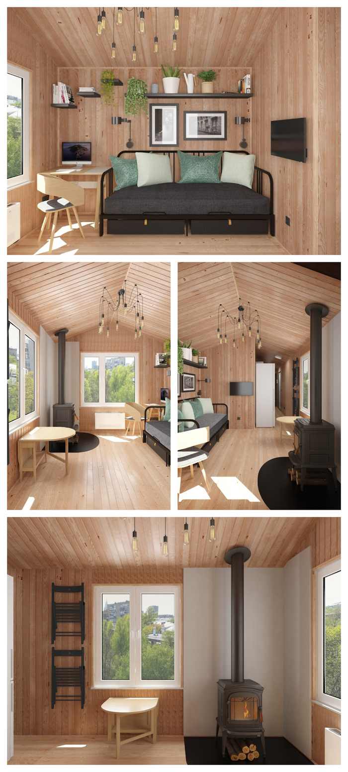 Ввиду скромных размеров такие домики как правило характеризуются тщательно продуманным интерьером, благодаря чему выглядят очень уютно. А еще их можно перевозить.