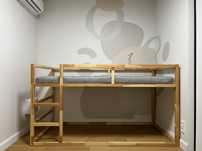 Отгораживаем детскую со своей спальней на втором этаже ( взрослая и детская спальни изолированы друг от друга на втором этаже. У ребенка своя лестница)