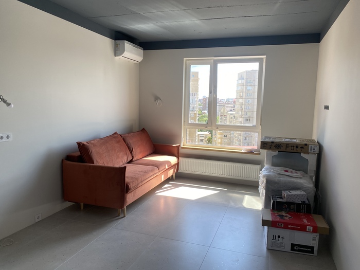 В процессе мы еще всё время что-то покупали, что пригодится дальше в ремонте, поэтому квартира постепенно захламлялась плиткой, сантехникой, бытовой и не только техникой и прочим.