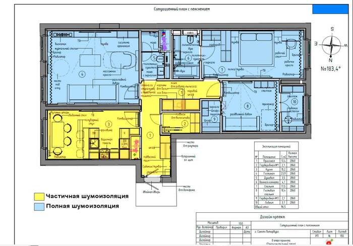 В квартире сделана полная шумоизоляция следующих помещений: гостиная, душевая, ванная комната, спальня, гостевая спальня, гардеробная, лоджия.
