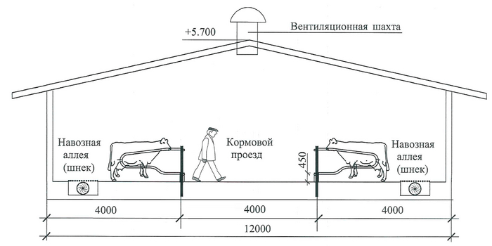 При строительстве коровника (КРС - крупный рогатый скот), вам следует знать основные параметры, по месту для размещения животного при привязном содержании и беспривязного.