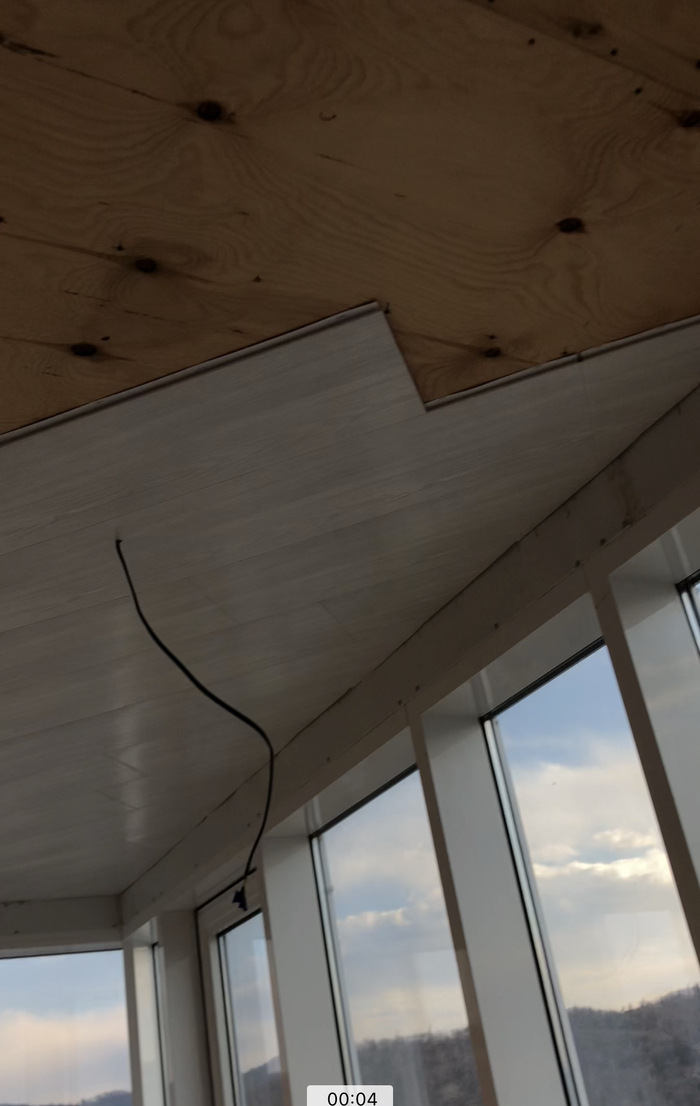Перешел к балкону. Появились вопросы к потолку. Натяжной я не хотел, делал из стеновых панелей пластиковых.