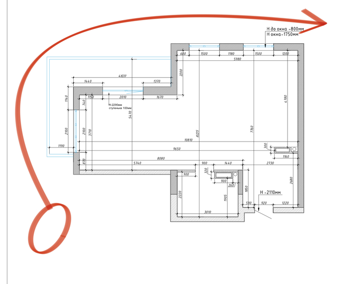 Вторая как бы сложность была с переходом между ванной и залом.