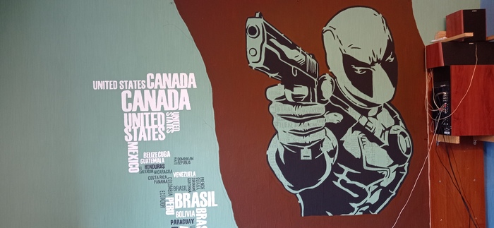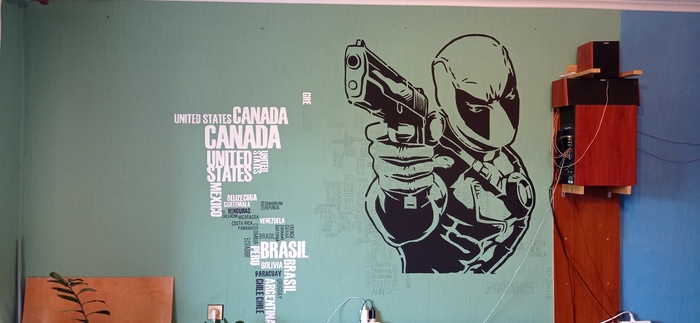 Доброго времени суток, пикабушники и пикабушницы! Захотелось мне немного оживить свою комнату каким-нибудь ярким мазком и мой выбор остановился на Уэйде Уилсоне, сиречь Дэдпуле. Подобный опыт у меня уже был, а значит дела за малым - поднять задницу с дивана и начать) Что мне для этого понадобилось: проектор, белая краска на водной основе, колера нужных цветов, 2 кисточки и карандаш: