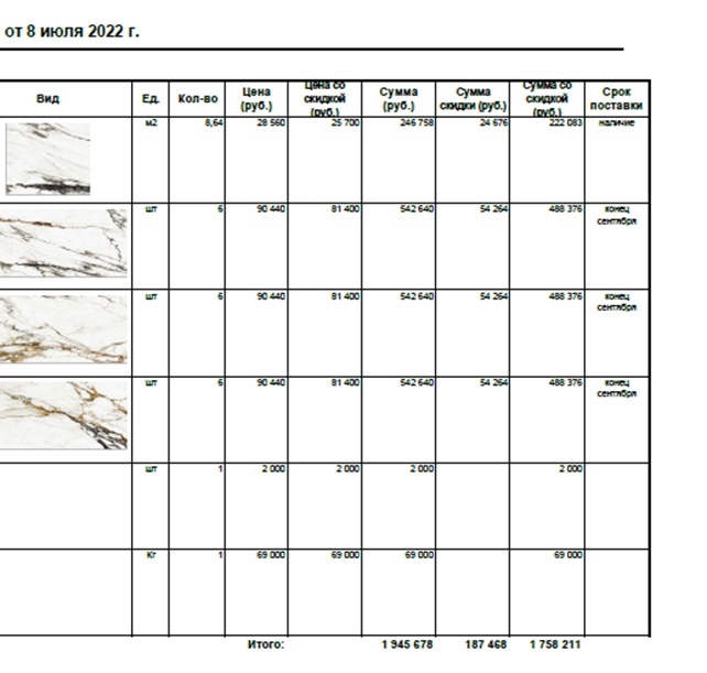 После подсчета нужной плитки, запросили счет. С учетом нашей дизайнерской скидки, этот счет вышел в 1 800 000 рублей!