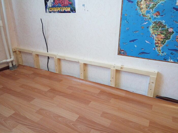 Сняли старый линолеум, постелили новый, смонтировали розетки (с электрикой тоже немного повозился, но этот вопрос не освещаю).