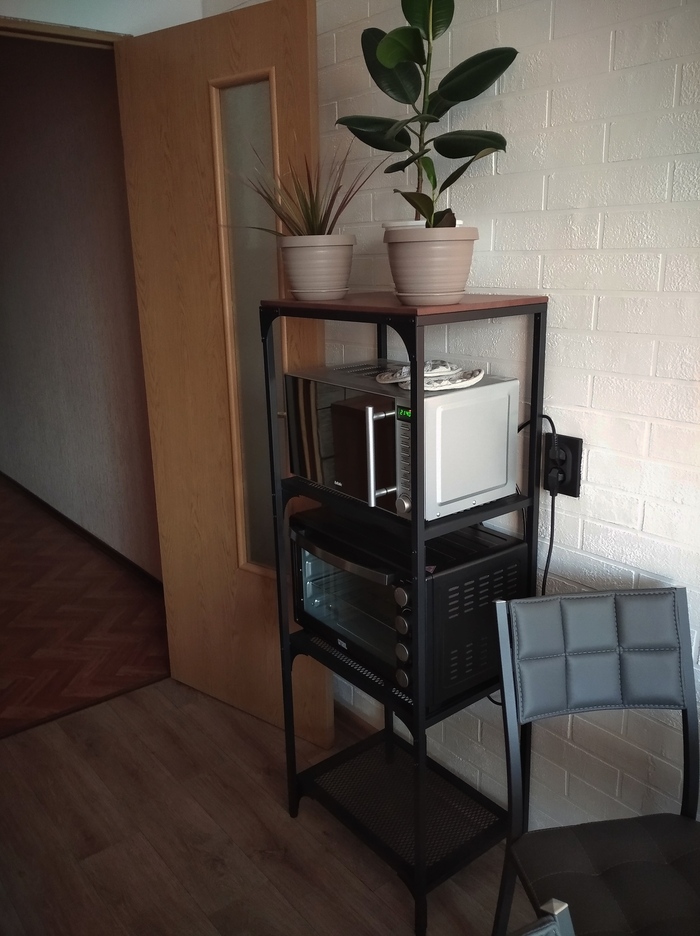 - использование стеллажа для духовки и микроволновки - отличное решение, чтобы разгрузить рабочие поверхности;