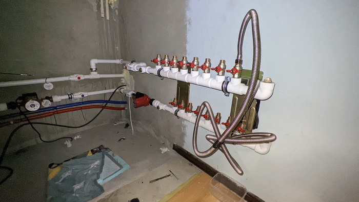 Спаян, установлен и опрессован коллектор 2 этажа.