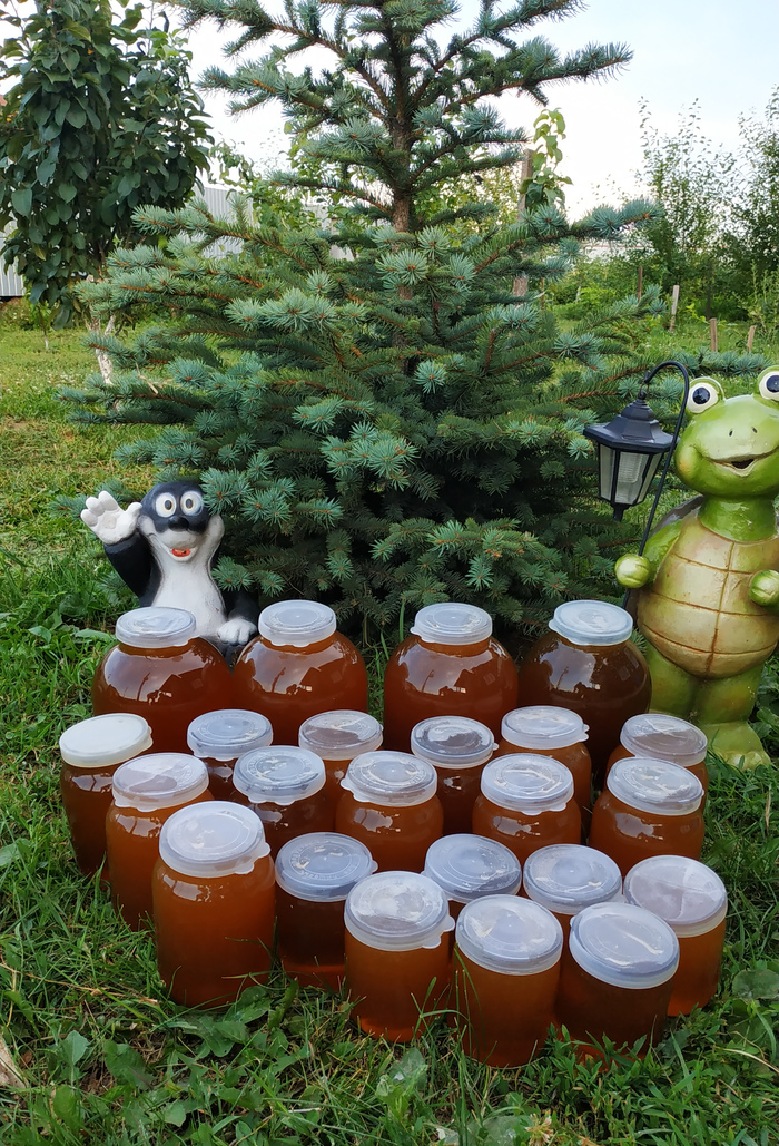 Пока мы работу работали, пчёлки нанесли немного мёда. Свои овощи, фрукты, ягоды, чай, травы, отвары. А теперь еще и мёд. И мёд этот, не с полей, которые за сезон по пять раз травят гербицидами. Не монофлёрный, толку от которого ничуть не больше сахара, а самый настоящий, полифлёрный, с разнотравья на моей же полянке внутри леса. Ни тебе полей, ни соседей, что так же травят свои огороды. Не мёд, а сказка. Ах да, наш сад всё растёт и хорошеет.