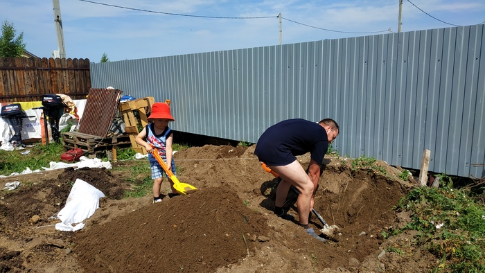 Наверное уже заметили, что на последней фото появилась еще одна лодка. Купил под восстановление. Уж очень водная тема меня затянула. Еще наверное читали в начале поста, что изучал тему ихтиологии. На месте, где предыдущий владелец, решил копать пруд. В квартире был аквариум, на участке же пусть будет пруд, чего уж мелочиться. Ах да, копали мы, дураки лопатами, ибо технике уже заехать нет возможности. Вернее не было. Поскольку как только всё вскопали, мы решили выкупать соседний участок. Выкупили. И заезд теперь уже есть. Спины уже нет, а заезд есть. П-продуман, блин.