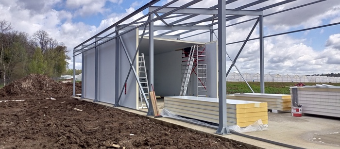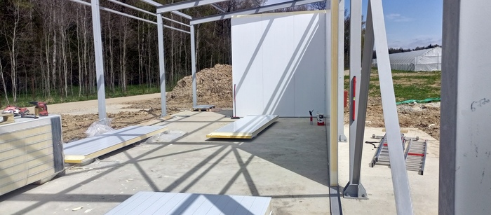 В начале мая мы начали установку холодильной камеры для овощей и ягод.