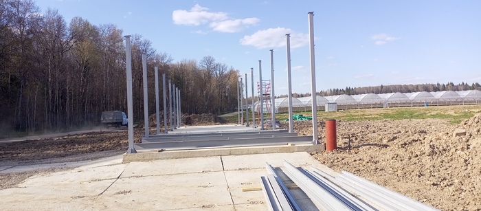 Все начиналось с установки опор. Каждая из них весит примерно 120 кг. Их всего 16 штук.