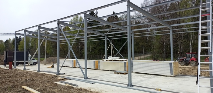 Подвезли пачки сендвич-панелей. 4 метровые на стены и 6 на потолок.