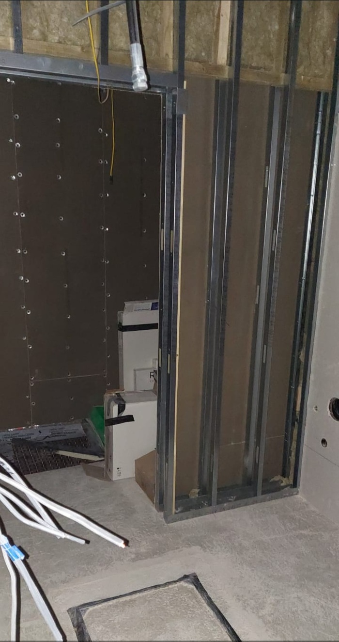 Подвал вырыт, электрики полностью закончили проводку всех электрических кабелей, сантехники закончили проводку труб, установленные все стены согласно согласованным чертежам и т.д и т.п.