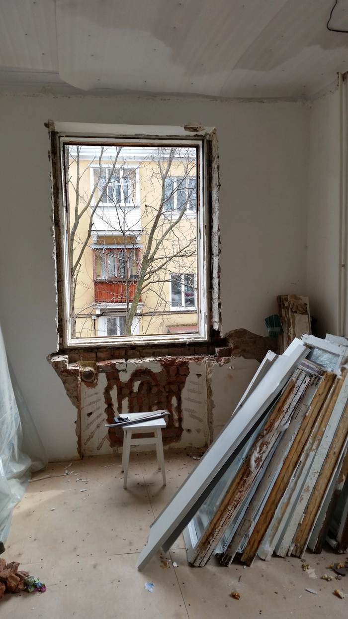 Но мы все же решили делать чуть получше, хотя и затянулся ремонт на 2.5 года. Решили менять окна. Окна ломал и ставил сам.