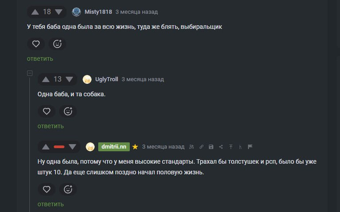Одни мужики начинают оправдываться: "Да я вообще святой, всего две было!" Другие хвастаются: "Ой, да я их не считаю, десятки были!"