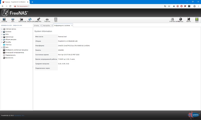 Содержимое корзины, Raid 10. В качестве системного диска простой IDE диск Seagate на 80г, для FreeNAS этого более чем достаточно) Работает практически в режиме простоя.