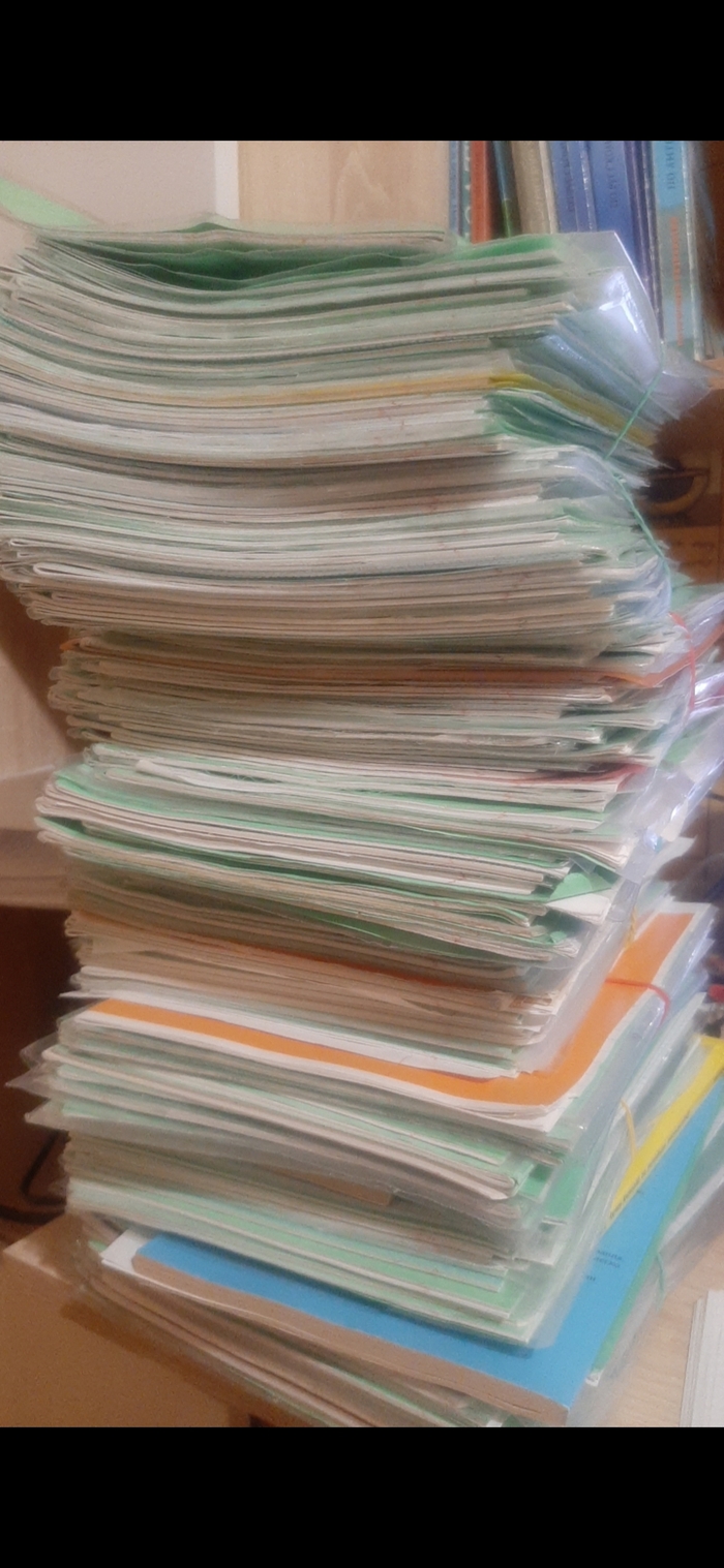 Если есть какие-то дела (походы к врачу, мфц, да что угодно), просто тащишь с собой 30-60 тетрадок, чтобы проверять их в автобусе или очередях к врачу. Да, зрение сдается и начинает падать.