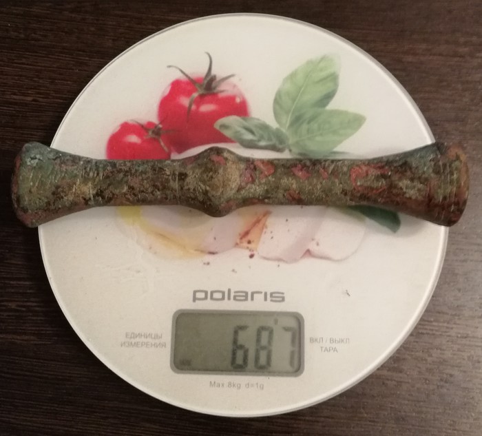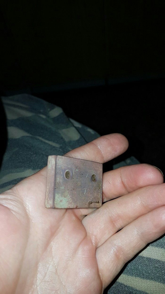 Два моих новых напарника подустали, сдались и пошли кушать к машине. А я как-будто чувствовал, что сейчас будет какая-то классная находка! Вместе с Лехой мы решили обойти по периметру небольшое болотце и не напрасно. Судя по находкам - керамика, кирпичи и два топорища, здесь тоже стоял дом, просто он был на отшибе. На обгоревшей земле ходить и копать очень удобно, сигналы слышны отовсюду. Вдруг раздался нехарактерный сигнал. Вроде и цветной металл, но с переливом в чермет. Кто копает, тот знает как часто бывают такие ложные сигналы. Ты тратишь кучу сил, а в итоге с большой глубины вытаскиваешь кусок ржавого металла. Но только не в этот раз, цепляю и вываливаю ком земли и от него отскакивает квадратный предмет!