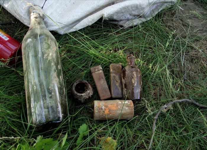 Следы жизнедеятельности эпохи Советов тут тоже попадаются повсюду. Пенициллиновых крышек к вечеру собрали больше сотни. Огромных водочных пробок не меньше 50-ти. Если бы вы знали как обманчиво они звенят в земле. Пока копаешь теплится надежда, что мало ли, вдруг это крупное серебро или хотя бы медь. (сигналы очень схожи) Вытаскиваешь заветный комочек, видишь блеск на солнце, сердце начинает стучать в предвкушение чего-то хорошего, разламываешь землю руками и та-да-да! Выпадает привет от Пети тракториста!)