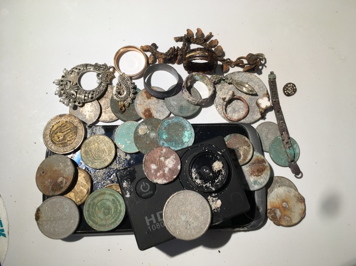 Находок среди затонувших лодок было очень много. Пробки, банки, бутылки, обломки селфи палок, смартфон и даже гоупро камера. Жаль, что на всё про всё у меня было всего 40 минут.