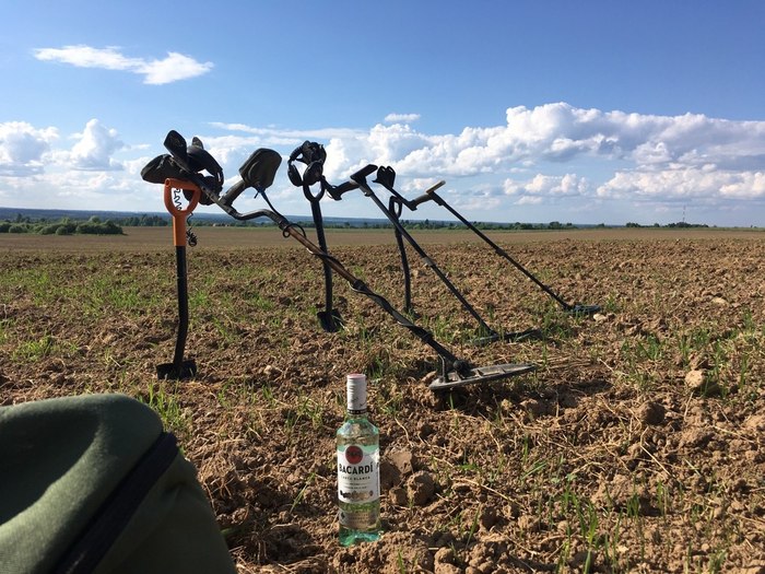 Каждый день на форумах я с тихой тоской и белой завистью разглядывал находки других кладоискателей. Из-за здоровья, с работой естественно у меня тоже возникли проблемы, но постепенно я все-таки начал идти на поправку. Спустя почти два месяца я не выдержал! Собрал рюкзак, сел в электричку и отправился на КОП с ночевкой. В первый день мы обследовали распаханные поля, моя душа просто пела! Копать самостоятельно, я по-прежнему не могу. Так и ходили гуськом, я нахожу, напарник копает. Находок было мало, но день не прошёл в пустую. У напарника напарника недавно был день рождения. Он из местных и по его звонку нам на обед привезли пиццу прямо в центр поля.