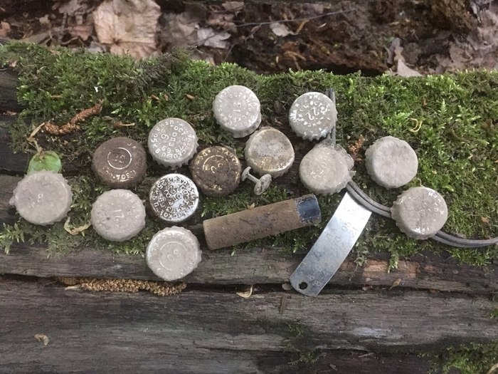 Вчерашнюю полянку мы нашли не сразу. По пути, как всегда, собрали кучу советских пробок. Раньше я их просто выкидывал, сейчас собираю. Как оказалось есть не мало людей которые их коллекционируют. Речь идёт о пробках из под Жигулевского. Стоимость таких вещей от 20 до 50 рублей за штуку. Есть очень редкие по 500 и выше! Говорят если собрать полный комплект по дням, то такой набор с числами будет стоить не меньше 10.000. Сколько пытался это сделать, всегда 1-2-х не хватает((