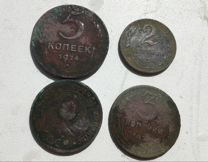 Чем дальше в лес, тем больше дров. Судя по находкам когда-то в этой чаще жизнь била ключом. Ранние советы выскакивают почти на каждом шагу. Почти все убиенные напрочь, но среди них попадаются нечастые пятачки 30-х годов! Если получится их удачно очистить то эти два могут стоить по 1000 рублей каждый. Но, это не точно)