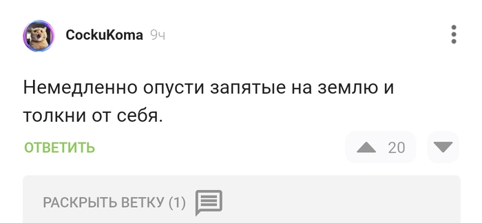 2 chinoz Специфический юмор Запятые 6 месяцев назад Ответ Schuhov в «Коротко о том, как легко стать насильником»#comment_353884154#comment_353895425@Nico2016, @CockuKoma, Вы в телевизоре! Показать полностью 1 Скриншот Комментарии на Пикабу Юмор Запятая Ещё 0
