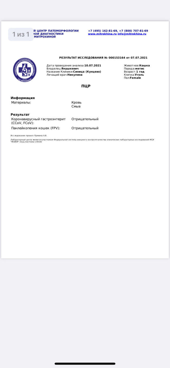 По инфекциям - я не знаю как, но она чиста. Врачи сказали, что крайне редко, но такое бывает с уличными кошками.