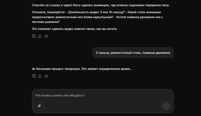Качество анимации зависит от качества исходного фото и формулировки описания.