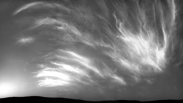 Облака на Марсе ,состоящие из кристалликов водяного льда.