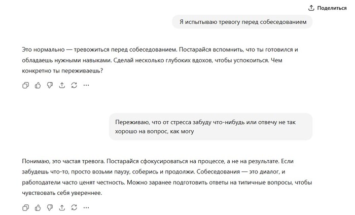 И хотя нейросеть может предложить разумные советы, она не может заменить настоящую эмоциональную связь с живым человеком, что иногда бывает критически важным.
