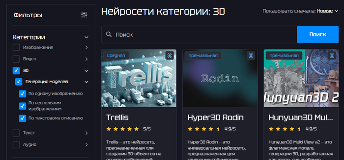 Сам сервис предоставляет доступ к нейросетям через простой API, так что можно автоматизировать и масштабировать задачи, связанные с 3D‑генерацией, без необходимости разворачивать собственную инфраструктуру. В разделе 3D доступны модели, которые умеют превращать изображения в трехмерные объекты или восстанавливать объем по нескольким ракурсам, что невероятно полезно, если нужно быстро получить 3D‑превью объекта или элемента архитектуры без глубоких навыков моделирования. Такие модели, как Hunyuan3D Multi View v2 или Trellis, способны создавать интерактивные 3D‑объекты за считанные десятки секунд на основе фото или набросков, что экономит уйму времени на начальном этапе проектирования. Благодаря гибкому API можно добавить подобные функции в свои собственные проекты или инструменты, не отвлекаясь на рутинные операции с серверами и GPU.